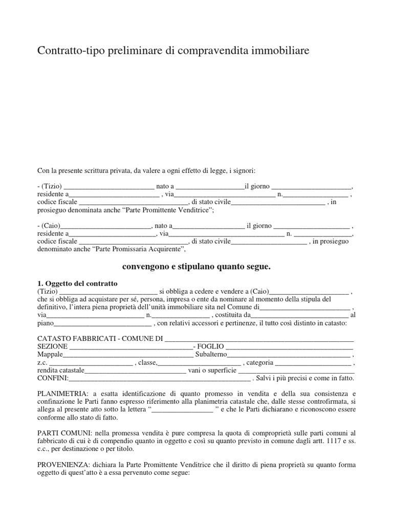 PDF FAC SIMILE / Modello Scrittura privata per compravendita immobiliare. di imposte, tasse e contrib ut i di al cun genere, né sono pendent i pi gnorament i , sequest ri o al t re procedure di natura civile, penal e o ammini st rat i va. b) Il promittente venditore garant i sce i nol t re che i n rel azione al l ' uni t à i mmobi l i are promessa i n