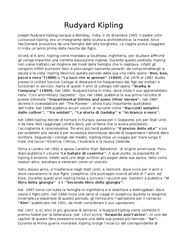 Lettera a un figlio - Rudyard Kipling, Mauro Evangelista - Google Books "If", la poesia nota anche come "Lettera a un figlio" che anima queste pagine, stampata in versi e raccontata per immagini, fu composta da Rudyard Kipling nel 1910. Nel 1995 un sondaggio della BBC stabilì che era la poesia più amata in tutta la Gran Bretagna. Citata in film e canzoni, tradotta in tutto il mondo, amata dai grandi, ingigantita su poster e rimpicciolita su cartoline, è una ...